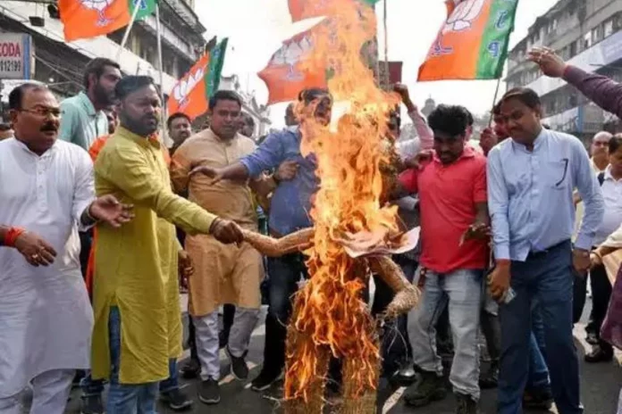 BJP protest: BJP workers staged a protest in Jhargram by blocking roads and burning tires against Bengal minister Akhil Giri over his remark on President Droupadi Murmu.