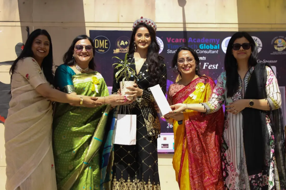 The Title Sponsors, V Care Academy and TimeTech Global Study Abroad Consultancy, along with other sponsors like Lakme and many more, were acknowledged for their valuable support. A special “Societies’ Success Ramp Walk” showcased the core committee, senior advisors, and faculty heads of the DME Cultural Cell in recognition of their collective efforts.