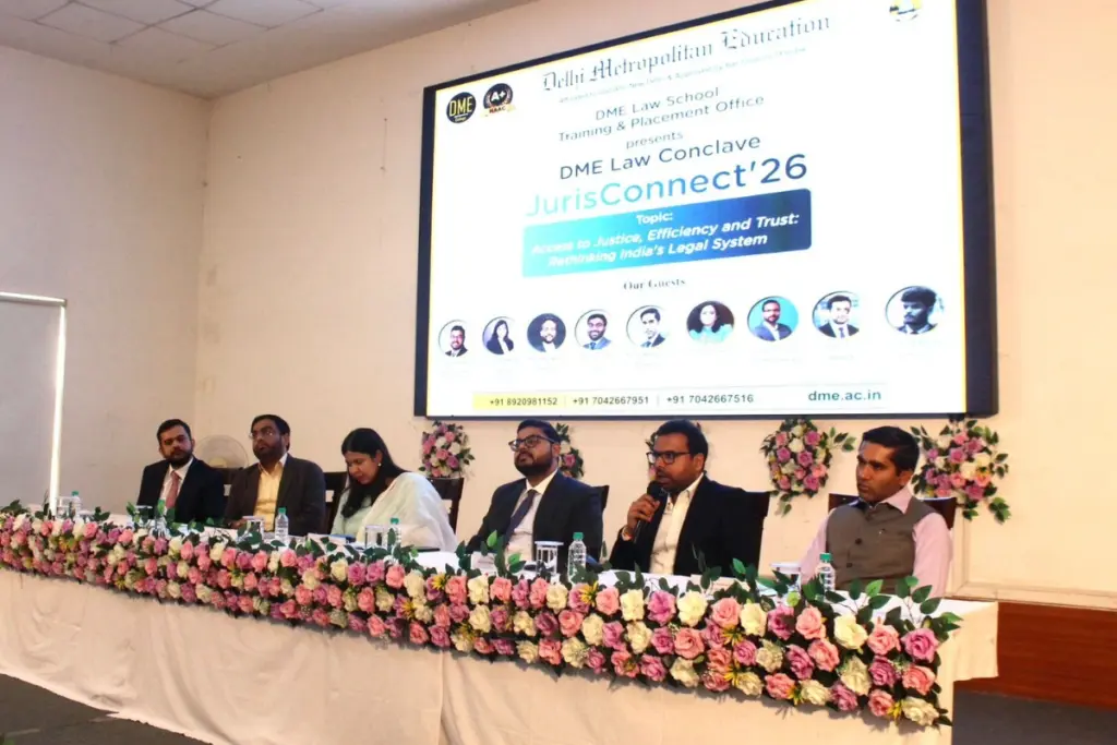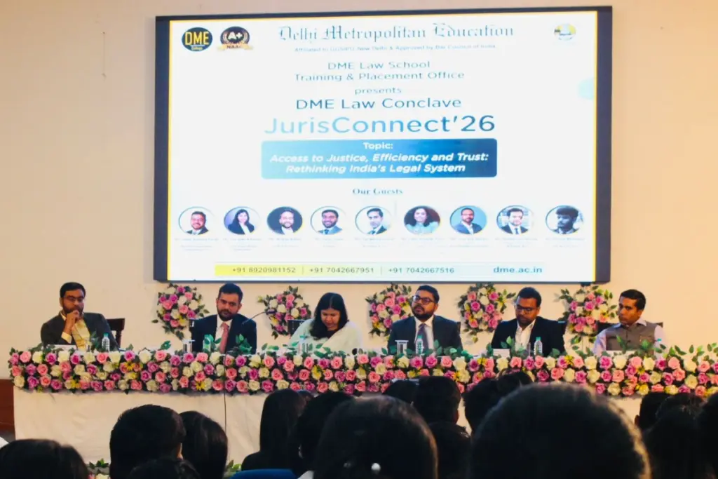 Delhi Metropolitan Education (DME) Law School organised its flagship conclave JurisConnect’26 on the theme “Access to Justice, Efficiency and Trust: Rethinking India’s Legal System” at Nelson Mandela Hall, DME Campus, Sector 62, Noida.