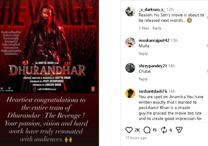 The sharpest remark came from a user who said, “Aamir Khan is a shaatir guy. He praised the movie too late and to create a good impression for himself.”