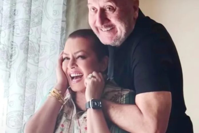 The video shared by Anupam starts with a photo of Mahima. Then, both pose for photos together. They are seen attempting different poses like wearing cool sunglasses and look at the same direction while Mahima sits in a chair and Anupam stands behind her. In yet another clip, we see Mahima setting her wig and posing for the cameras. In another picture, Anupam plants a kiss on her head.