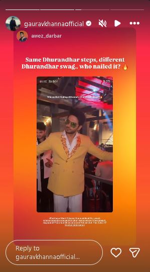 Gaurav later reshared the video on his Instagram story. He reported the video and wrote, “Same Dhurandhar stps, different Dhurandhar swag. Who nailed it?”