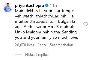 Reacting to Bharti’s vlog, Priyanka wrote, “Main dekh rahi hoon aur tumpe yeh watch itni achhi lag rahi hai mujhse bhi zyada. Tum Bvlgari ki agle Ambassador ho. Bas abtak unko maloom nahin tha (I am watching your vlog, and the watch looks so good on you more than it looks on me. You are the next brand ambassador of Bvlgari; they just didn’t know till now). Sending you and your family so much love.”