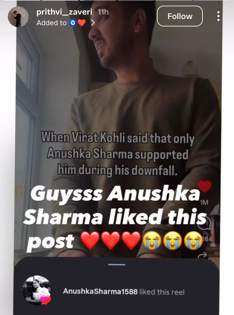 The reel might have been made in humour, but what truly sparked reactions was Anushka liking the video. Her like did not go unnoticed, and soon fans flooded the comments with playful excitement.