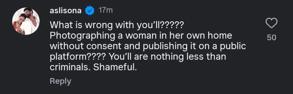 This moment sparked outrage across social media, and actress Sonakshi Sinha was one of the first to call out the behaviour. Sharing her disappointment, she wrote, “What is wrong with you’ll????? Photographing a woman in her own home without consent and publishing it on a public platform???? You’ll are nothing less than criminals. Shameful.”