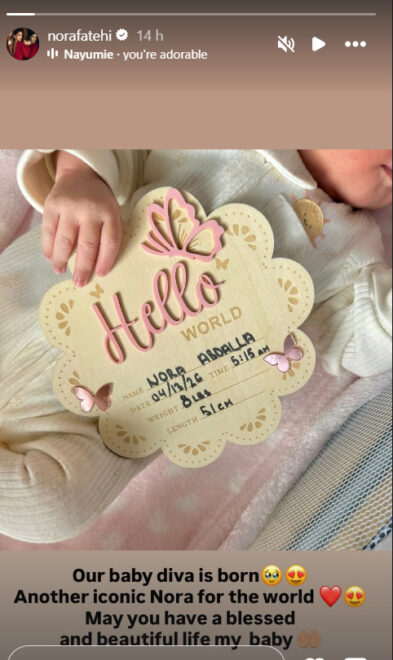 She lovingly referred to the baby as a “baby diva” and wrote, “Our baby diva is born. Another iconic Nora for the world. May you have a blessed and beautiful life my baby.”