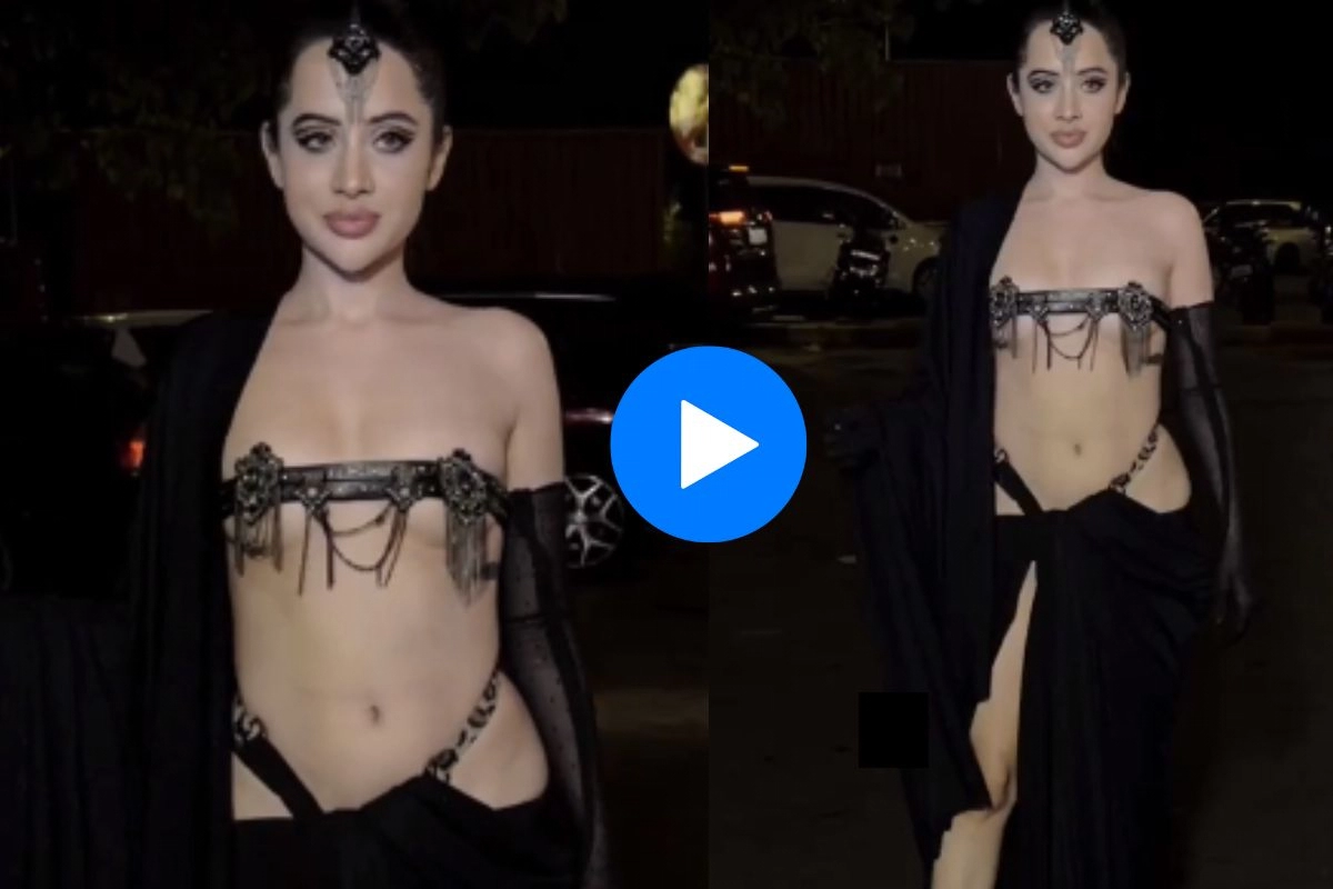 Urfi Javed was spotted in Mumbai with her sister in a bizarre outfit. She wore a thigh-slit dress with a quirky embellished bralette and maang tika from the shelves of Shantanu and Nikhil. She completed her look with heels and gloves and flaunted her bold look while posing for the paps. Urfi can be seen chatting with the paparazzi and saying them ‘maaf karo’ as they said that two more paps will come to capture her wherever she will go.
