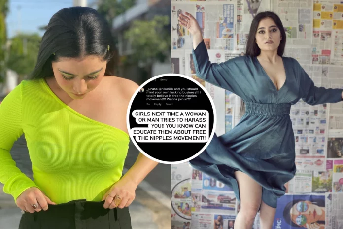 To this Urusa replied, “You should mind your own F***g Business. I totally believe in the free the Nipples Movement!! Wanna Join in???”