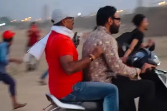 Video: Ajay Devgn rides bike without helmet as thousands of fans chase him during Bholaa shoot
