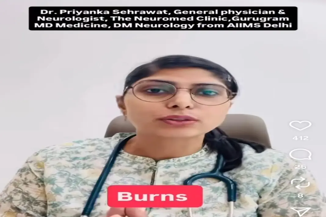 Dr. Sehrawat advises that in the case of burn injuries, one should cover the affected area with a clean cotton cloth to prevent infections. Applying Silver Sulfadiazine ointment can be very effective in soothing the burn and reducing the risk of bacterial infection. She also stresses avoiding the application of home remedies like toothpaste or butter, which can worsen the condition.
