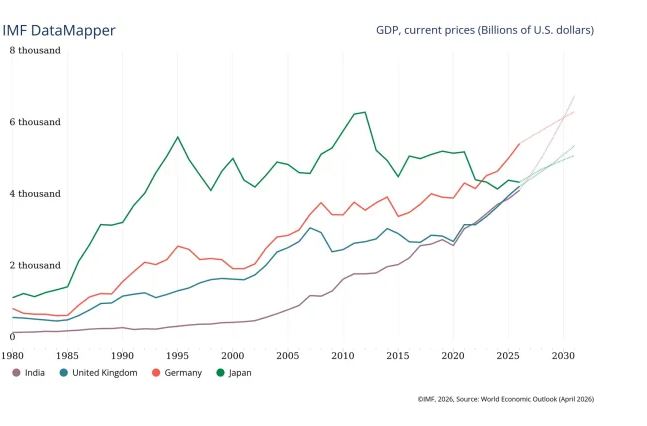 India is now expected to overtake Germany by 2031, which would be a delay of 2 years than previous IMF estimates.