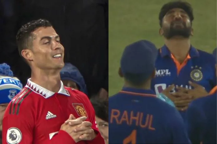 Siraj mimicked Cristiano Ronaldo’s well-known and current “Peace” celebration, in which the footballer folds his palm in front of his chest, looks up at the sky, and closes his eyes, to celebrate in style after getting his third wicket, Hasan Mahmud.
