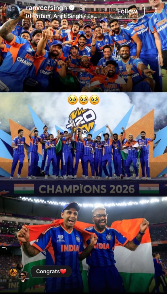 Ranveer Singh, who is known for his contagious enthusiasm, hailed the win with an enthusiastic post on X, complimenting the team’s courageous play. People liked how excited he was, and the video rapidly went viral online.