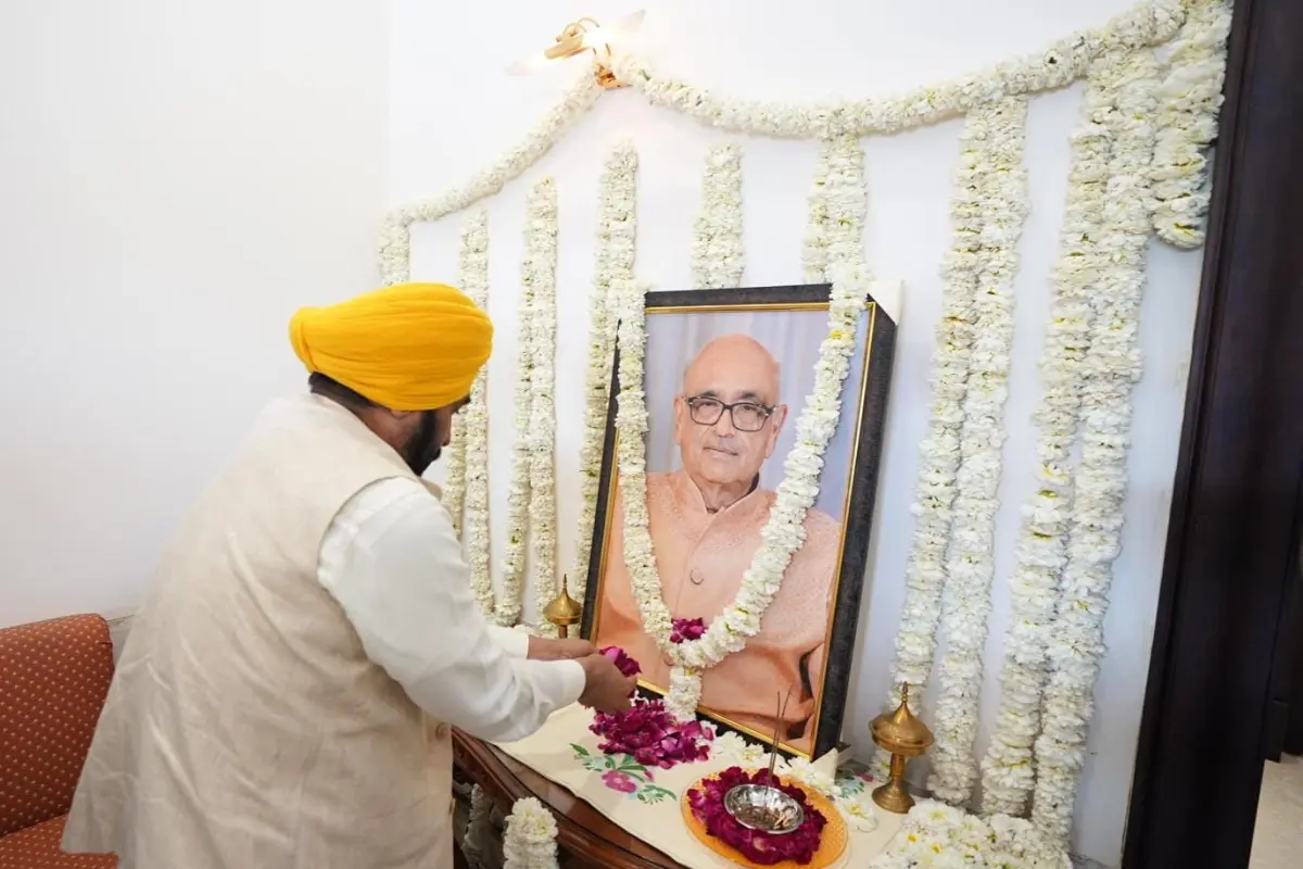Punjab Chief Minister Bhagwant Singh Mann on Saturday visited to share condolences with Cabinet Minister Aman Arora and the Gilhotra family over the sad demise of eminent social worker Sandeep Gilhotra, who passed away a few days ago. Sandeep Gilhotra was the father-in -law of Cabinet Minister Aman Arora.
