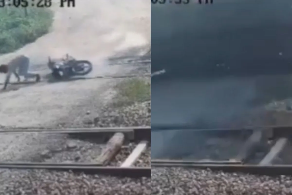 This Greater Noida viral video is shocking viewers on social media. It lays focus on young man who slips with his bike on railway track. As he was trying to pick up his bike, a fast moving train passes him.