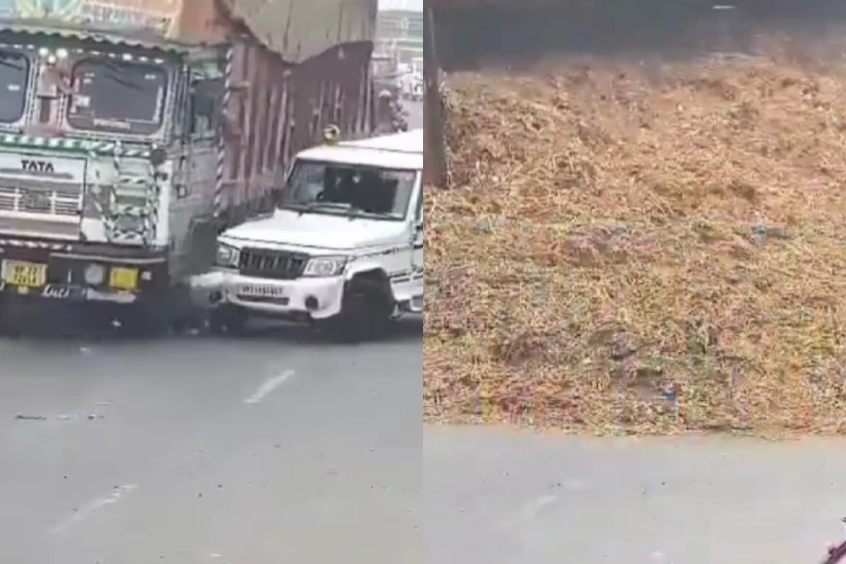Rampur Viral Video: In the viral video, we can see the truck loaded with bhusa (straw) was moving at a very high speed when it hit the road divider first. After the impact, the truck lost its balance and overturned, thus directly crashing and landing onto a Bolero vehicle that was passing nearby. Bolero was the vehicle that got crushed under the massive weight of the truck. Sadly, one person travelling in the Bolero has been reported killed on the spot, while others have been injured. The video is very clear that the accident happened so fast that the Bolero driver had no time to react or escape.