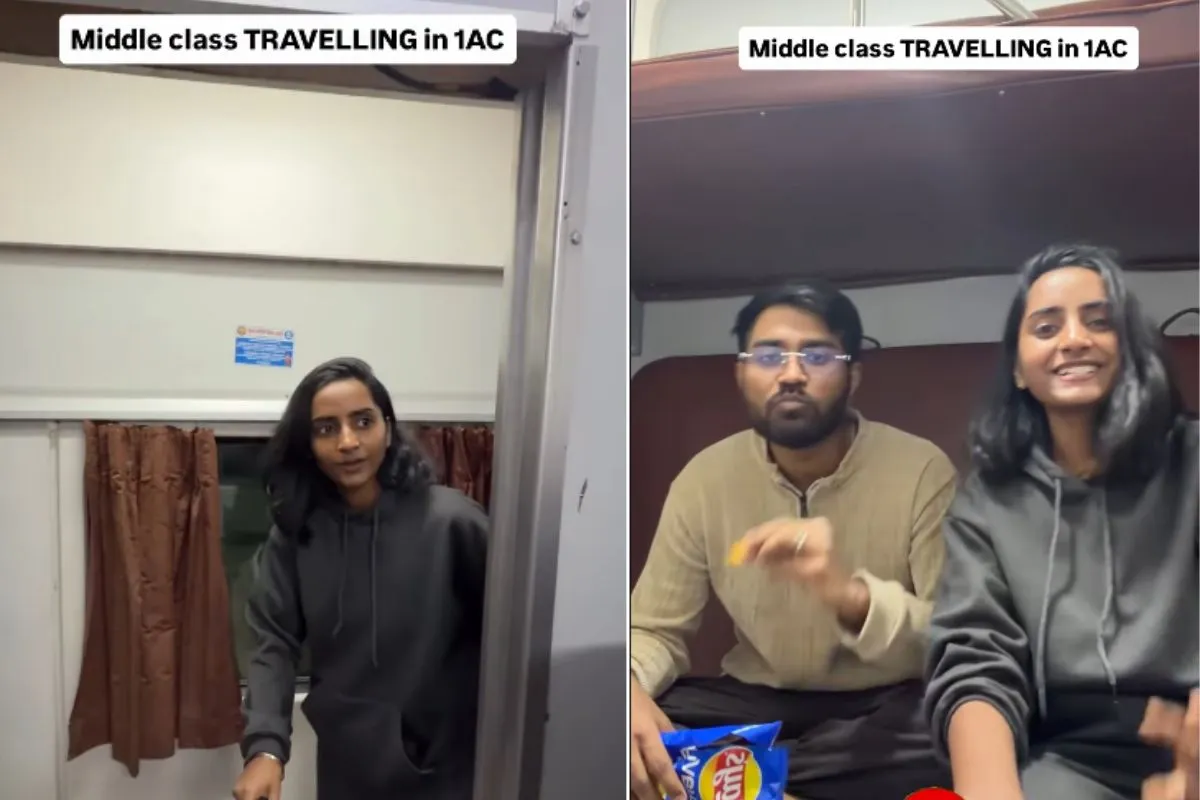 Viral Video: Travelling in 1 AC of the train is very expensive that only rich people can afford. But when middle class people travel in it for the first time, they get awe-struck to see the facilities available inside it. A viral video has surfaced on a middle class girl, who travels in 1 AC with a male companion for the first time. She feels very comfortable and expresses her surprise over the facilities available there.