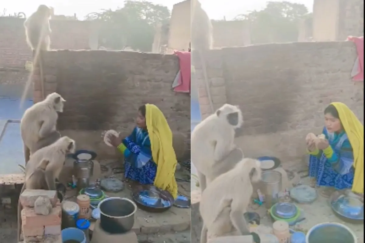 Viral Video: Bhuta Yajna has originated since Vedic times. During those times, householders used to perform it to feed insects, birds and animals. But those who are religious still believe in this practice to get benevolence in their lives. This video lays focus on a woman, who is not handing out hot ‘Rotis’ to langurs, but also blowing air into them to cool them so that langurs’ tongues do not get burned. It seems that this woman is highly religious and follows her ancient culture.