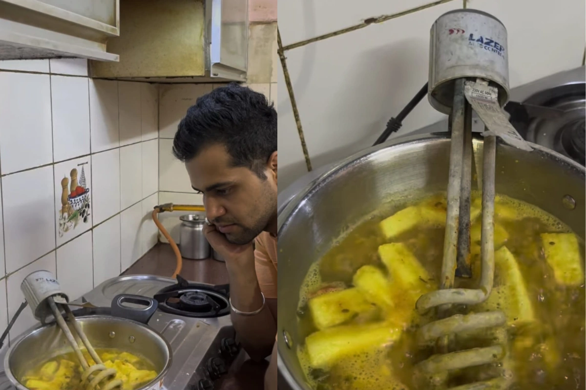 Viral Video: A shocking video that has been going around on Instagram has made people laugh and worry. The video shows a man cooking food with an immersion rod, which is usually used to heat water. This caused a lot of people to react online.