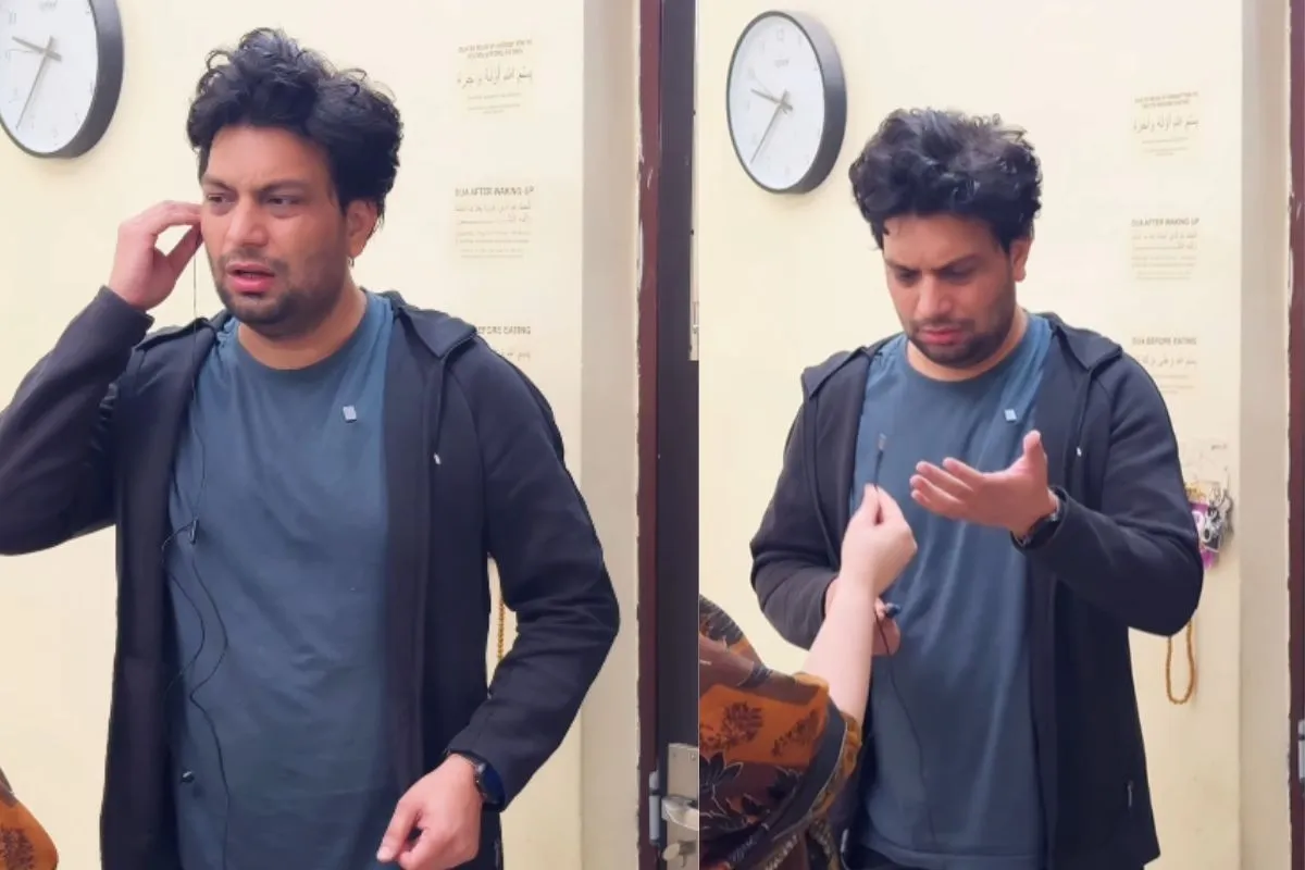 The wife asks her husband what gift to carry to Padosan. When husband is not able to decide about it, the wife says that she has a large ‘Kurta’ that she will gift her. The husband says that XL size kurta fits her. The wife becomes suspicious of husband’s relationship with her, so she asks him how he knows this. But the husband turns the table on her by saying that he is talking to someone else over mobile. He dramatises to talk like this, “That’s what I am asking whether he knows Excel or not. I am sending files, so edit in excel.” Now, the husband takes out earphone from his ears but his wife spills the beans about him by seeing the connector of the earphone that he is holding in his fist.