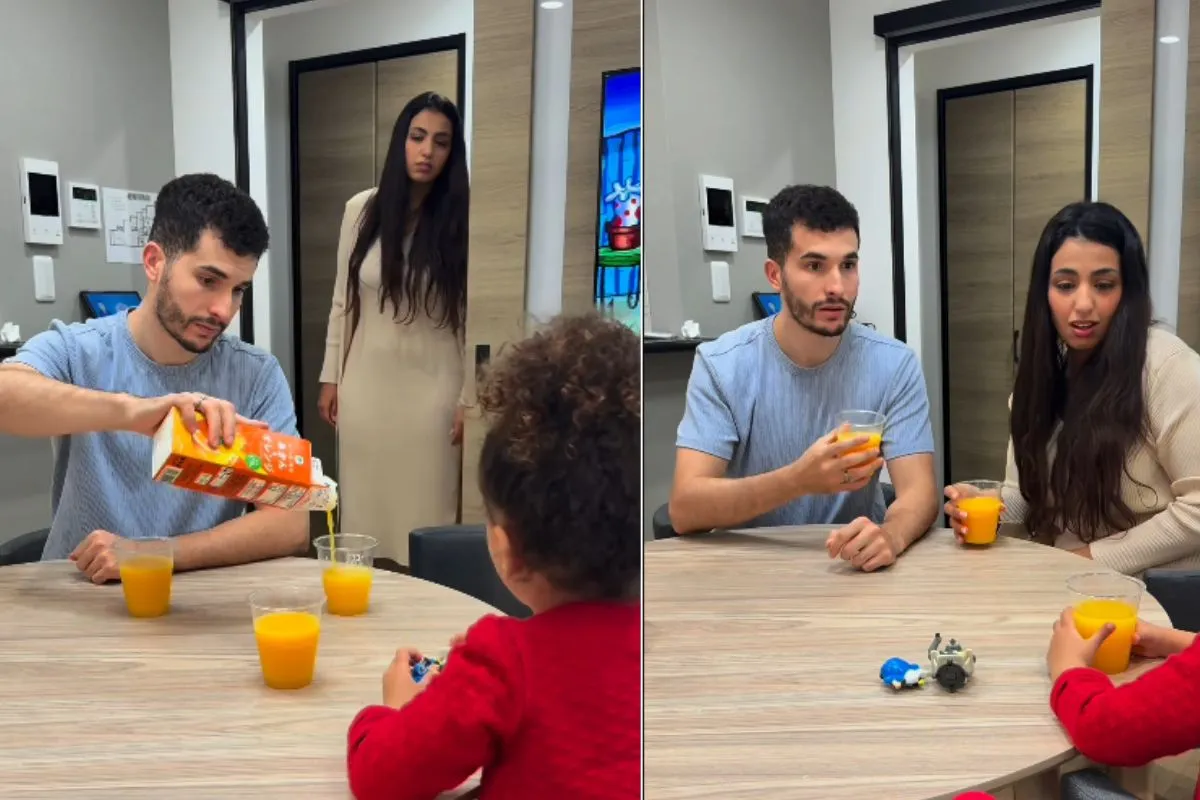 Viral Video: Every responsible man loves his family and makes sacrifices for his family members. A viral video has surfaced on social media, where father and his little daughter are sitting at a dining table. The father is pouring juice into three glasses from cannon—one for little daughter, one for himself and one for this wife.