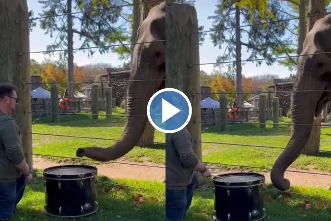 In this video, the man is seen playing the drums and showing an elephant standing after that surprisingly the elephant started playing drums with his truck and gave a tough competition to the man. This video is actually very amazing to watch the music-lover elephant is creating buzz on the internet.
