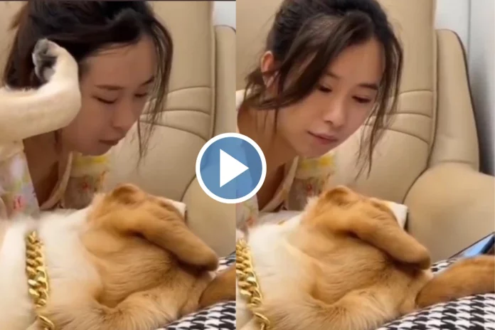 In this video, you can see a girl who is busy watching some video on her phone, and her hair is quite messed up. Later in the clip, you will see the dog lying next to her continuously watching, and as could not see her face he slowly removes her hair from her face. This action by the dog surprises the girl. This video shows how a dog can also fall in love with a girl and he can do anything to make her smile. This video is now creating a buzz on social media. Watch this dog pampering video here.