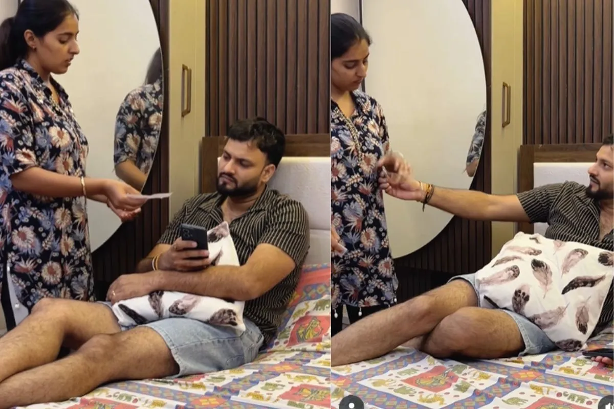 Viral Video: ‘Karwa Chauth’ is one of the most important festivals for wives. So, they indulge in extensive shopping for this festival. A viral video has surfaced on social media that lays focus on wife, who presents list of items for shopping to her husband. The latter asks the former to read items aloud. The items include one golden mangal sutra, two suits, two sarees, two golden bangles, and a makeup kit. The husband refuses to buy them, saying, “I do not have budget for these items. The wife presents before him another list, which includes two things only—one cement gatta (one sack of cement) and one blue drum. On hearing these items, the husband feels terroised and gives her money to buy things of her first list. The content creator has created the content of this video for fun purposes.