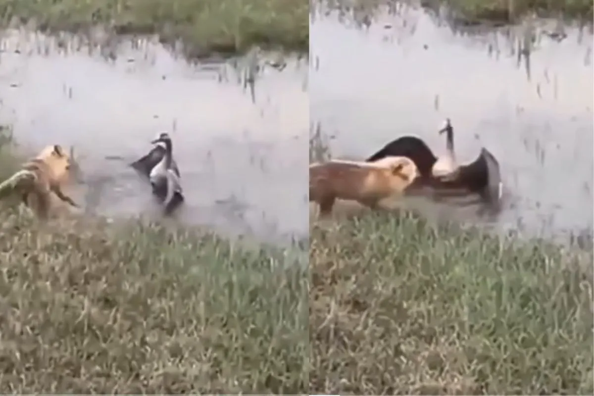 Viral Video: Whether human beings or animals, families hold great importance for them. They even put their lives at stake to protect their families from predators. A viral video has surfaced on social media that lays focus on a father goose who is protecting its young ones from ferocious attack of fox by spreading its wings on its both sides. Both father goose and its young one is in stream. The fox suddenly goes near the stream and tries to attack the young one of father goose. But Father goose spares no pains in protecting its young one. On seeing this, netizens are in awe.