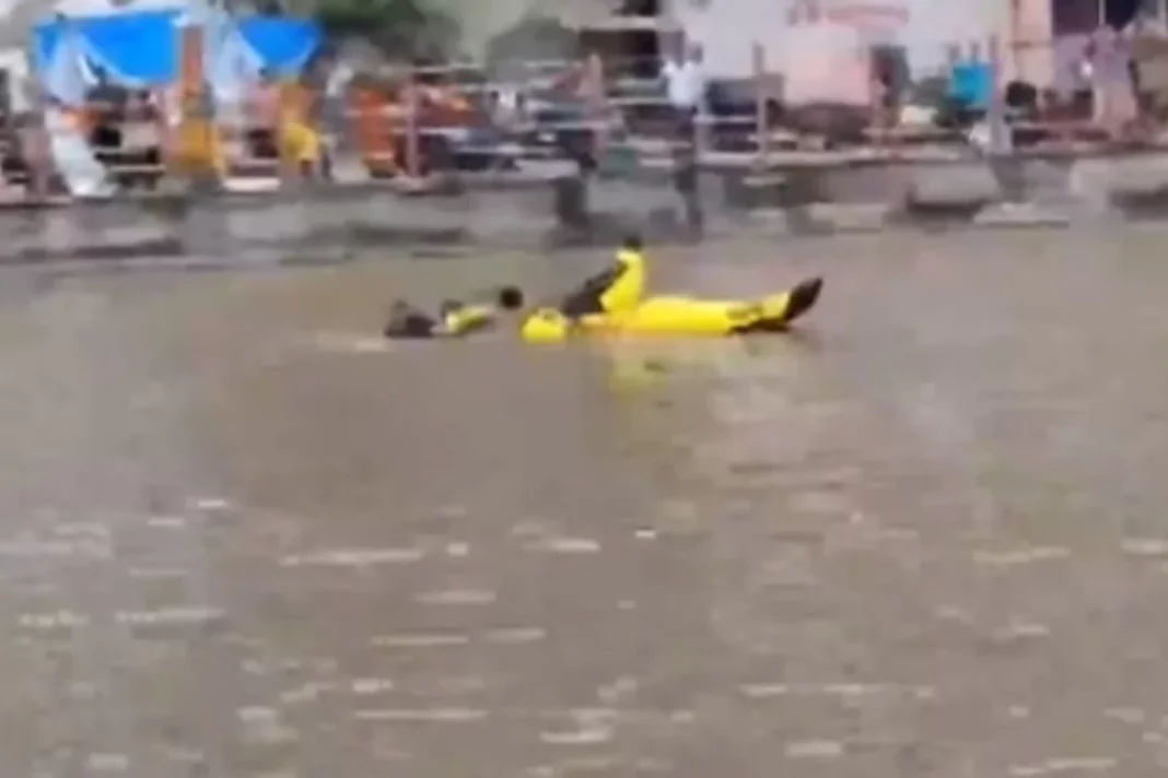 Accidents are often reported while taking Gangajal. On Wednesday too, Kanwariya, who went to collect Gangajal, started drowning in the river. It was a matter of pride that the SDRF team saw the Kanwariya flowing in the fast current of the Ganga. Without delay, an SDRF jawan jumped into the waves of the Ganges. The jawan saved the Kanwariya from drowning without caring for his life. People praised the jawan for taking out the kanwariya safely from the banks of the Ganges.