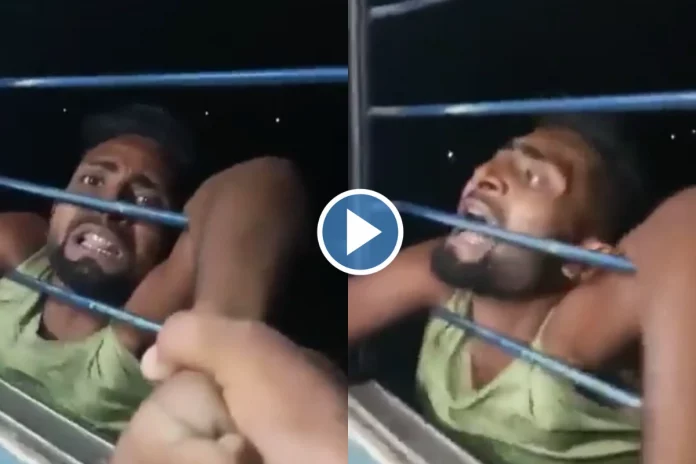 The recent video surfaced on social media is of Bihar in which a mobile thief is seen hanging from the train. Nowadays the thieves are more afraid from the public as compared to police. Tha hanging thieve from the window of the train, was caught by the passengers during seezing a phone. He is seen constantly pleading with the passengers not to leave him.