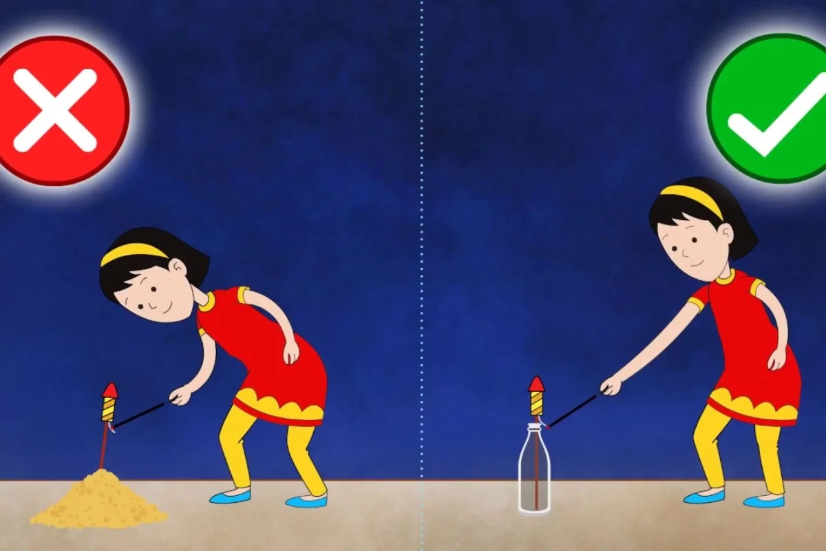 2. Burst crackers only in open spaces, far from vehicles, trees, and flammable items.